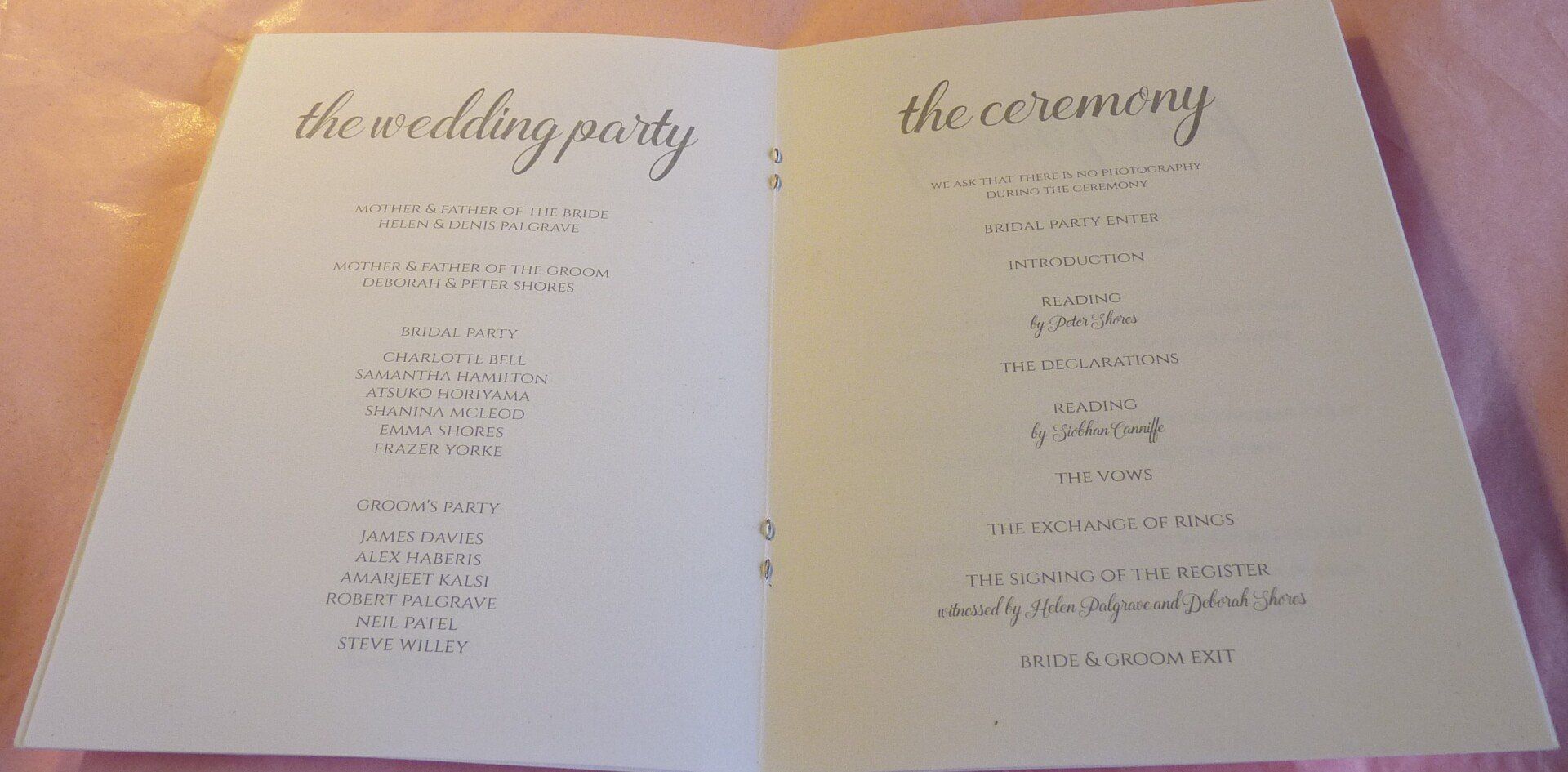 Orders of service booklets, Envelopes (bespoke to match invitations)