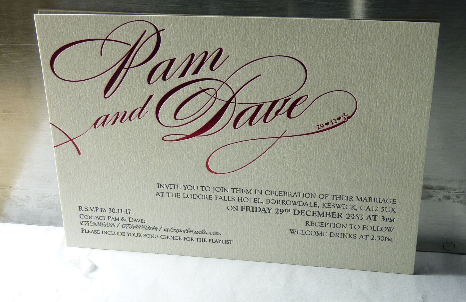All invitation pieces are created from either customer's artwork (supplied) or from the customer's brief to create a bespoke artwork in-house. Proofing is by PDF file via email.
